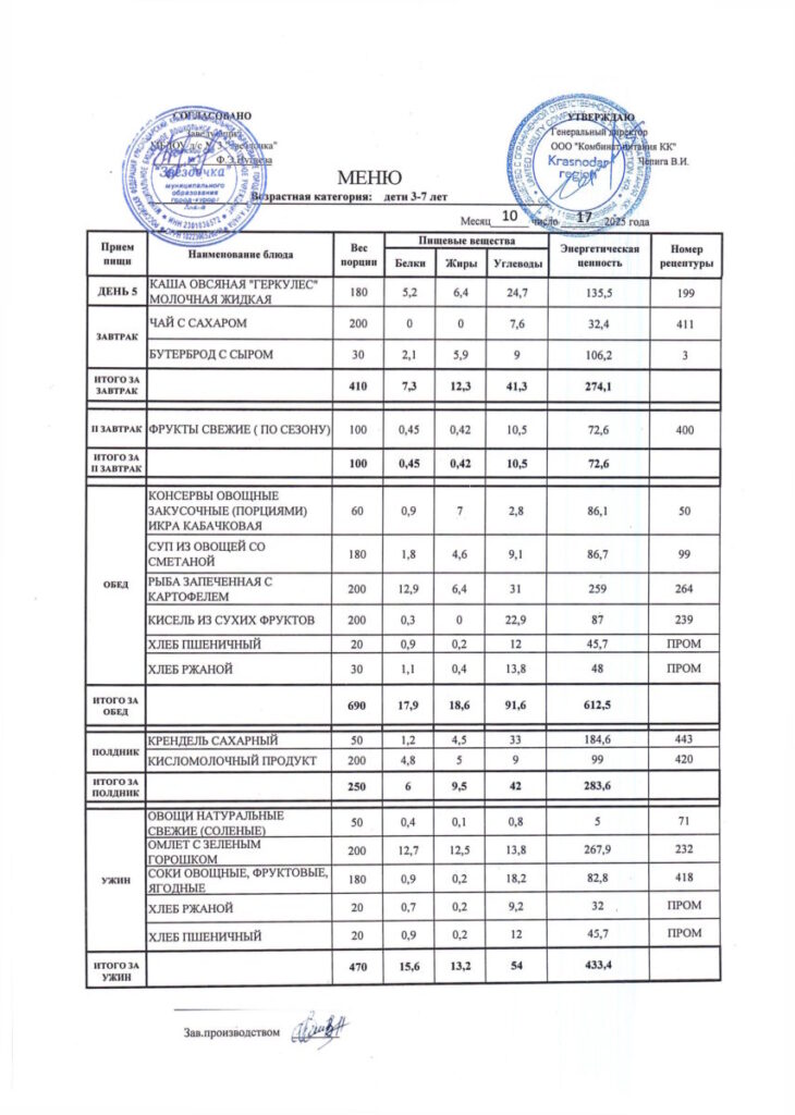 см. 10-ти дневное меню ежедневного горячего питания для детей 3-7 лет
