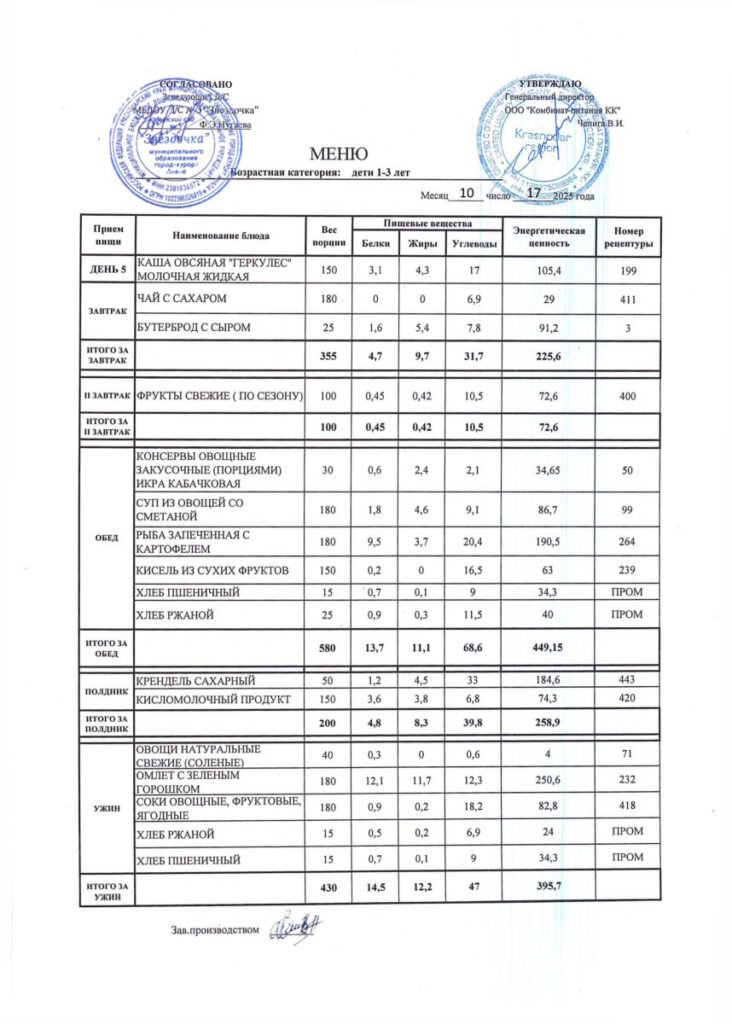 см. 10-ти дневное меню ежедневного горячего питания для детей 1-3 года
